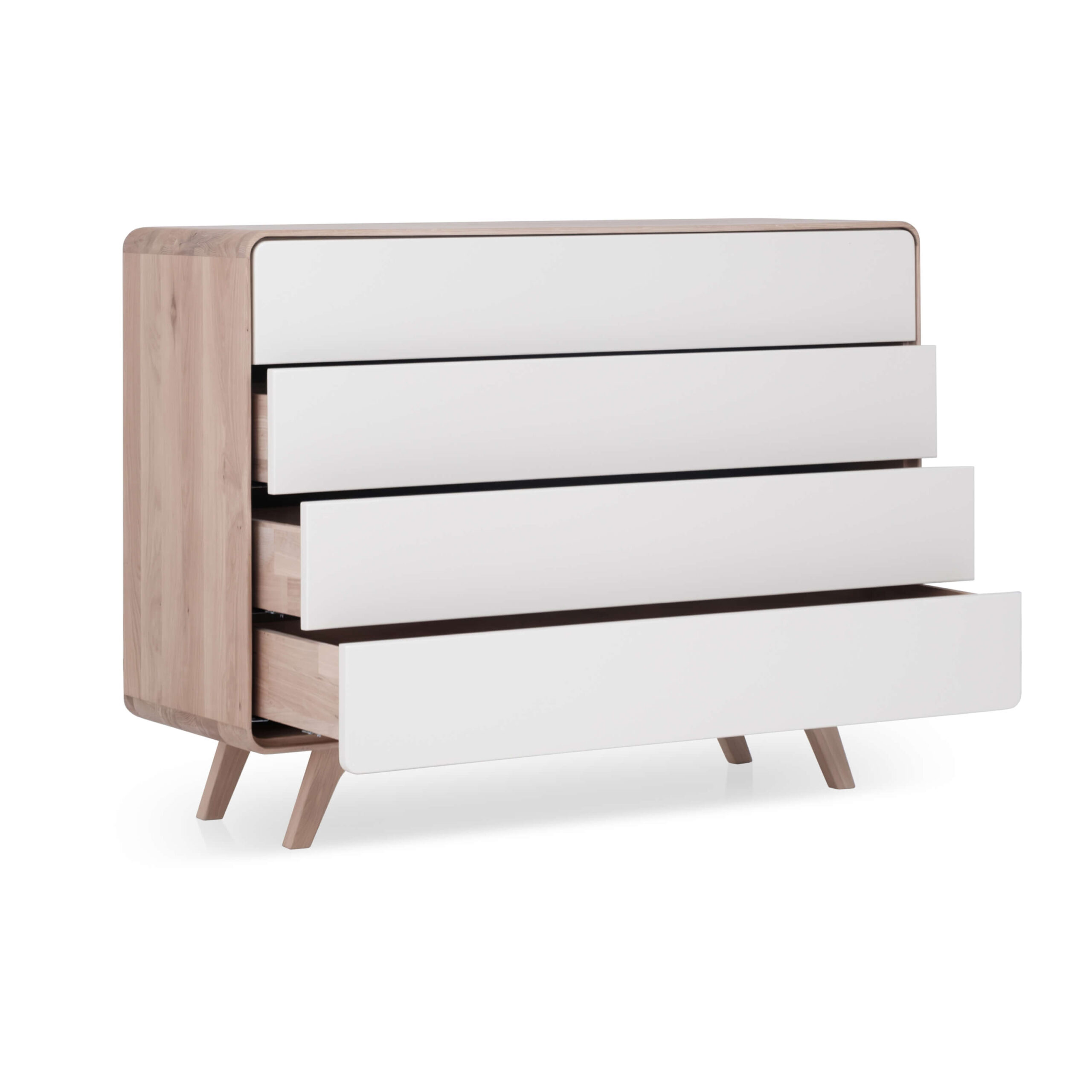 Das größte Schubladenelement der Kollektion bietet großzügigen Stauraum bei zugleich klarer, zurückhaltender Formensprache. Der massive Eichenkorpus, die sanften Rundungen und die schlichte Front schaffen ein hochwertiges, harmonisches Erscheinungsbild. Ideal unter Spiegeln, Fernsehern oder als niedriges Sideboard – flexibel einsetzbar und perfekt kombinierbar mit anderen Avolo Elementen.