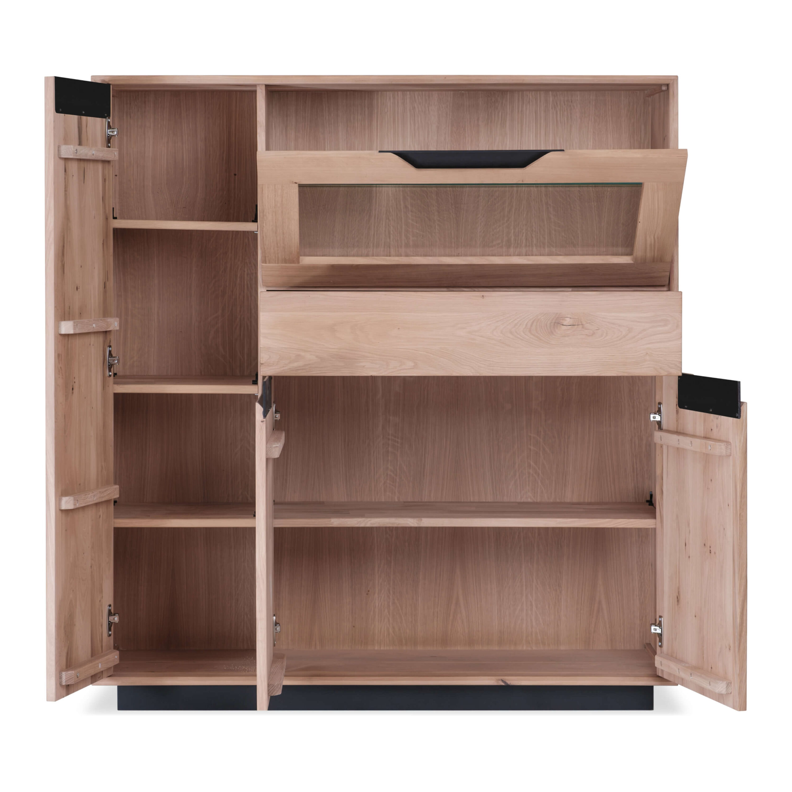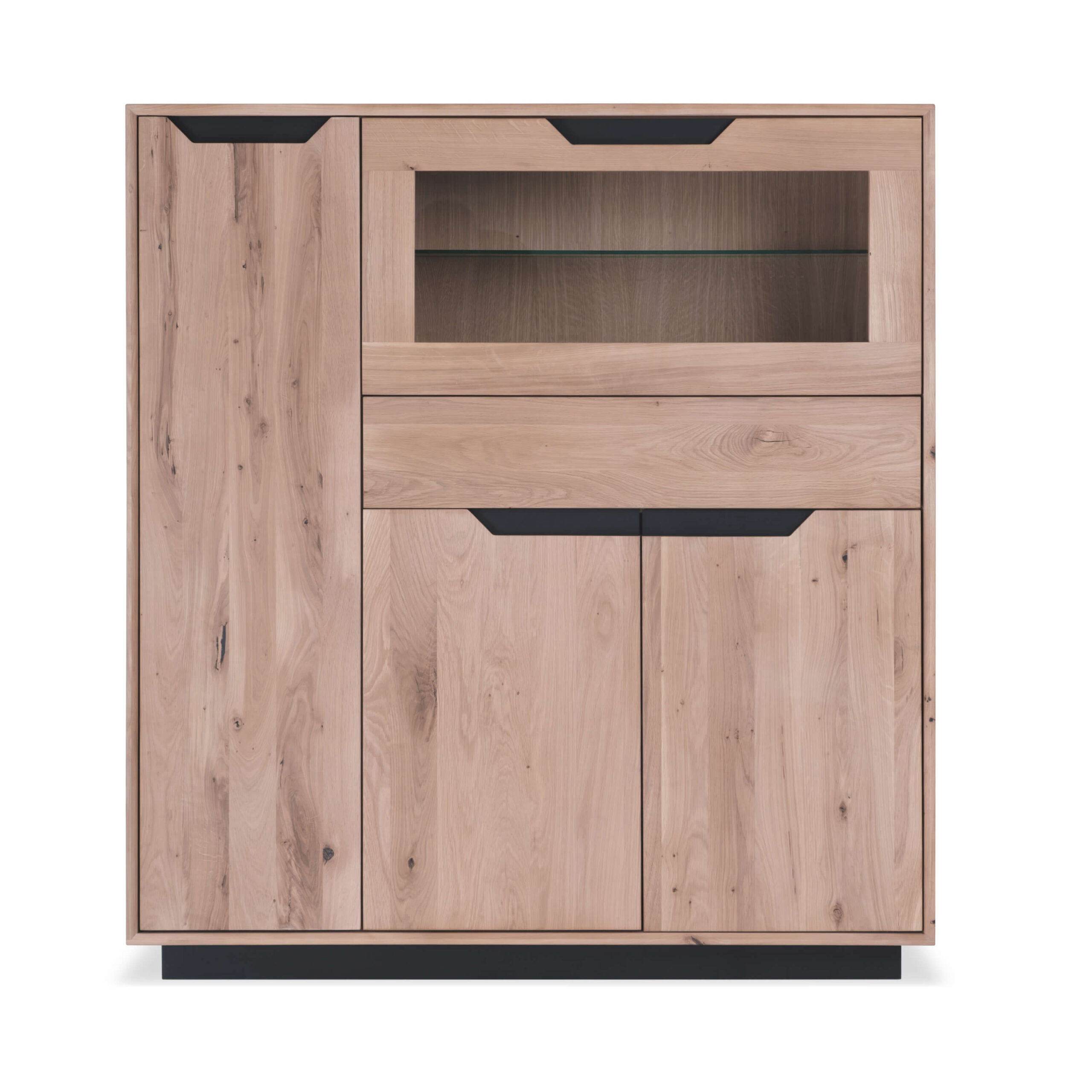 Das Highboard der Primo-Kollektion bietet vertikalen Stauraum in eleganter Form. Die Kombination aus offenen und geschlossenen Elementen schafft Raum für sowohl dekorative Präsentationen als auch diskrete Aufbewahrung. Massives Holz, klare Linien und eine sorgfältige Verarbeitung machen dieses Möbelstück ideal für moderne Wohnräume, in denen jeder Quadratmeter zählt. Perfekt geeignet für kleinere Wohnungen, Arbeitsbereiche oder Esszimmer, die zusätzlichen Stauraum benötigen – ohne auf Stil zu verzichten.