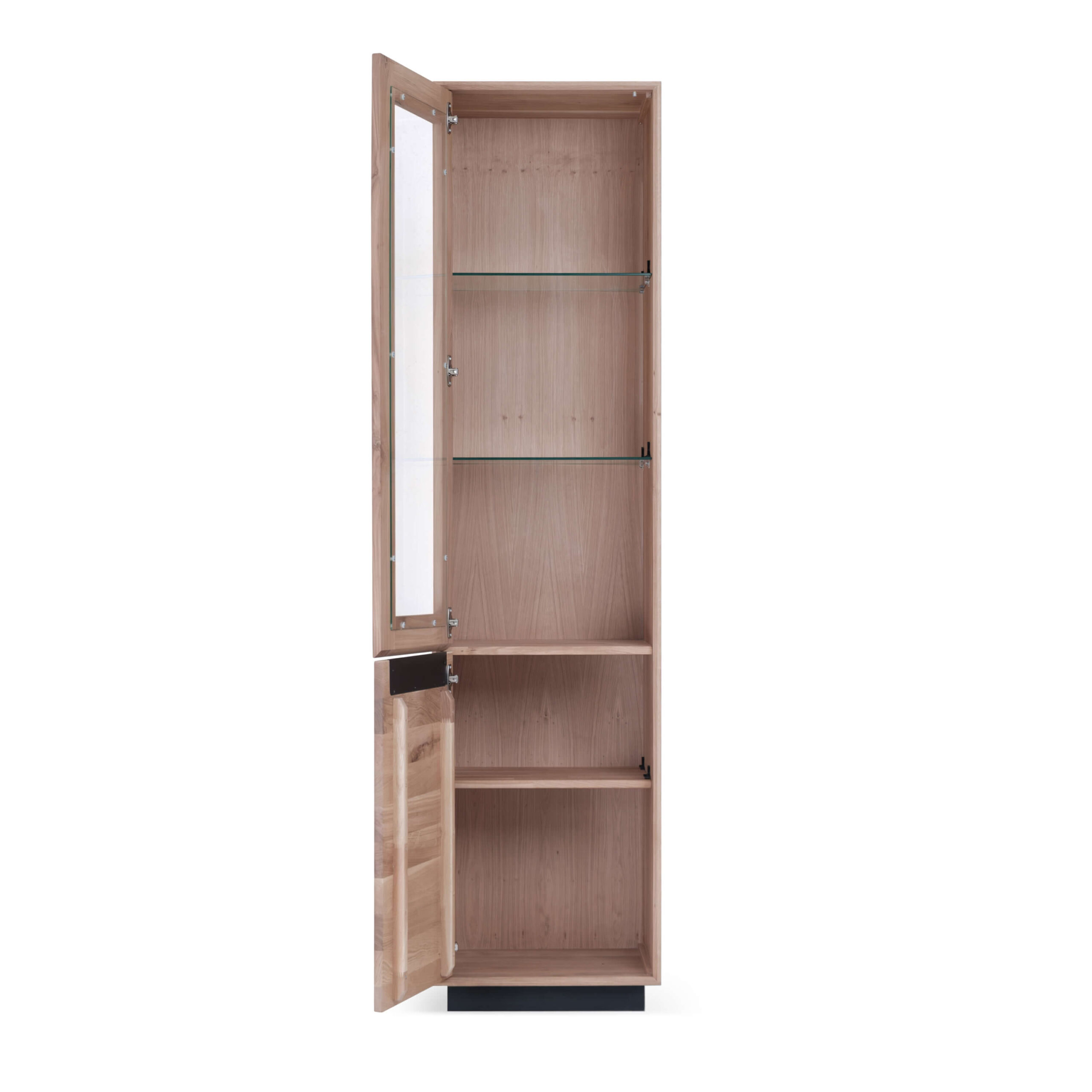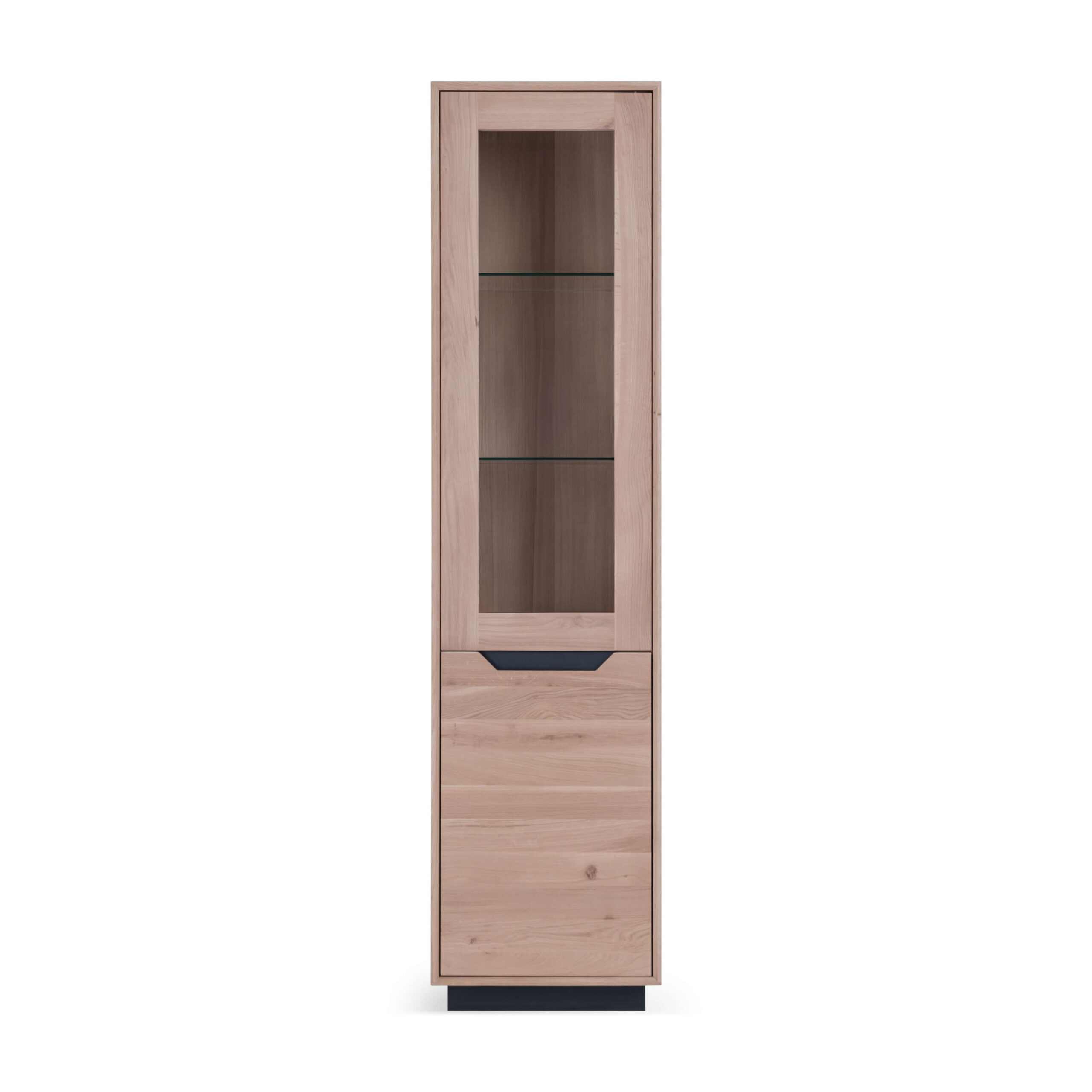 Die einflügelige Vitrine aus der Primo-Kollektion strahlt Eleganz und Feinsinn aus. Gefertigt aus hochwertigem Holz mit dezenten schwarzen Akzenten, ist sie ideal zur Präsentation von Glaswaren, Porzellan oder dekorativen Objekten. Die Glasböden im Inneren bieten flexible Nutzungsmöglichkeiten und eine übersichtliche Anordnung. Ein stilvolles Möbelstück für Wohn-, Ess- oder Arbeitsräume, in denen Funktionalität und Ästhetik Hand in Hand gehen.