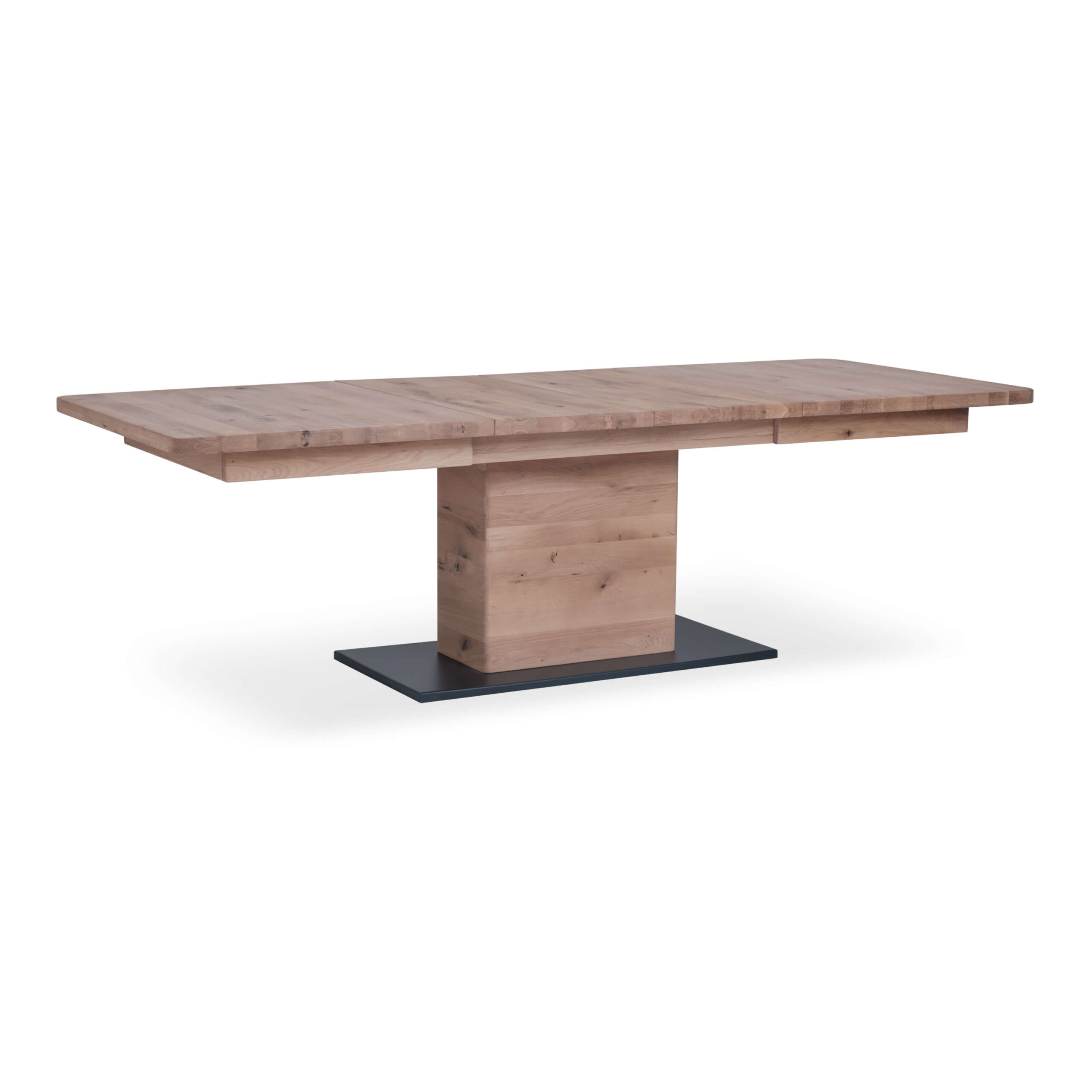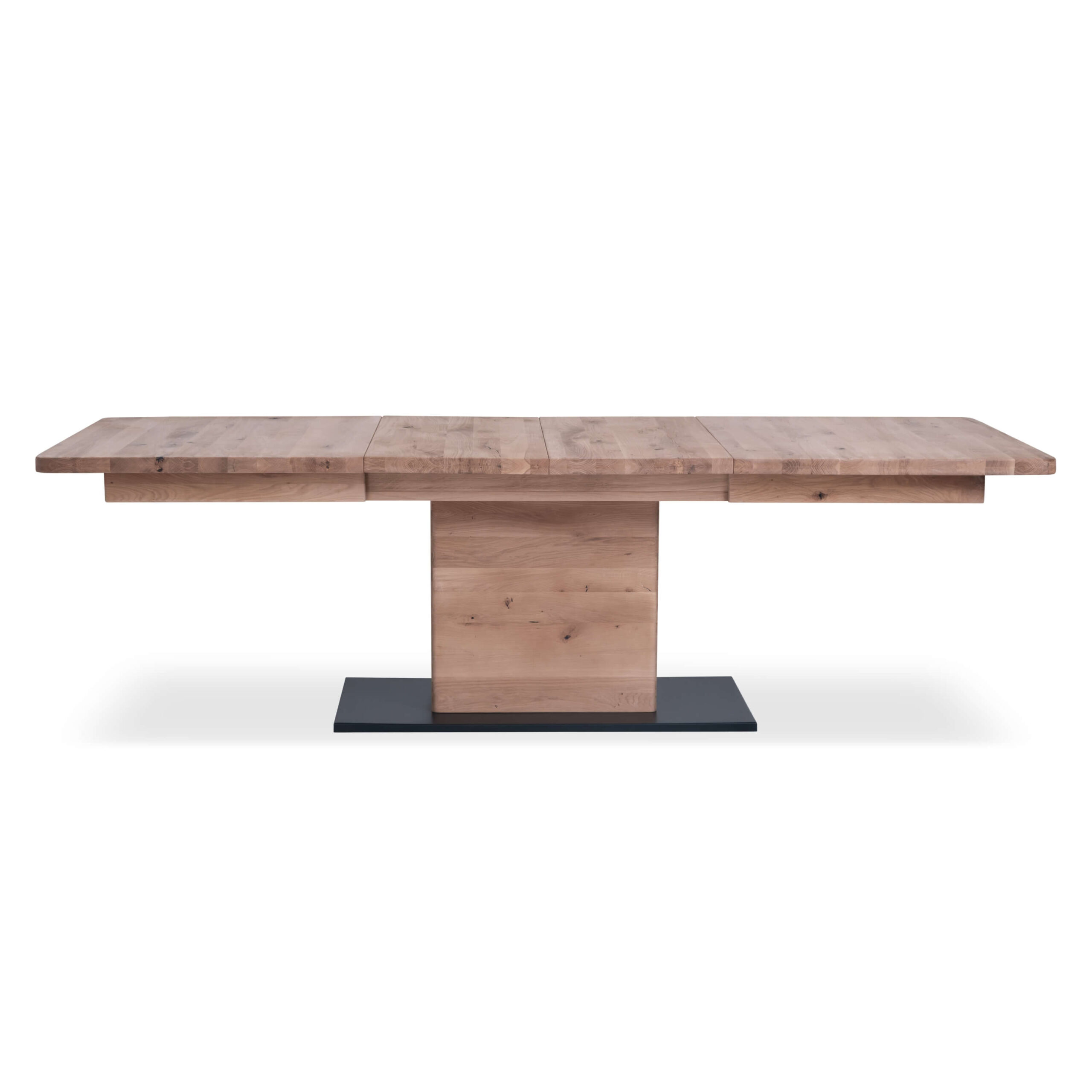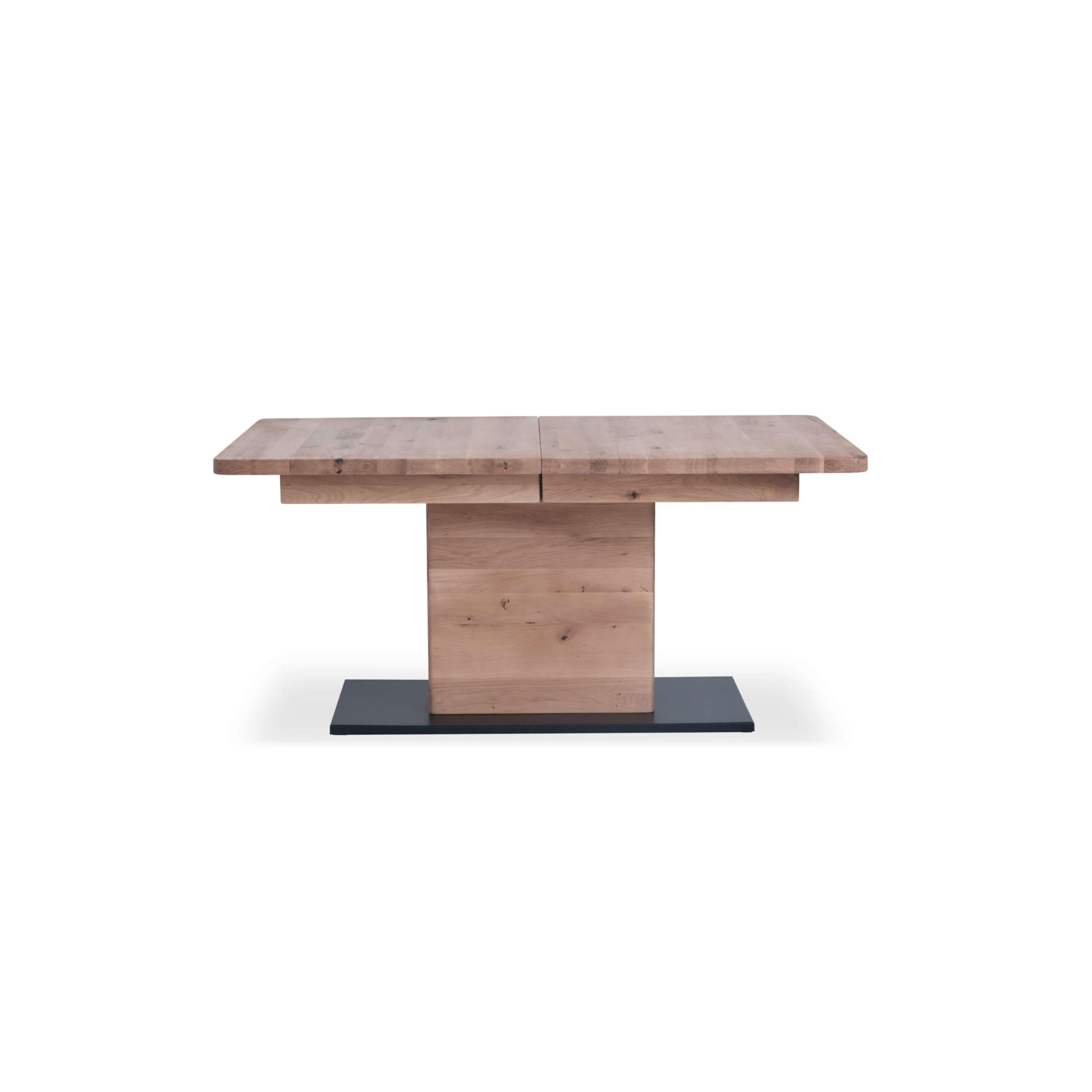 This extendable dining table perfectly merges practicality and elegance. In its compact 160 cm form, it’s ideal for everyday meals, but it easily extends to 205 or even 250 cm – perfect for larger gatherings. The solid wooden tabletop and robust base provide stability and durability, while the clean design and natural wood texture make it a visual centerpiece of any dining area.
